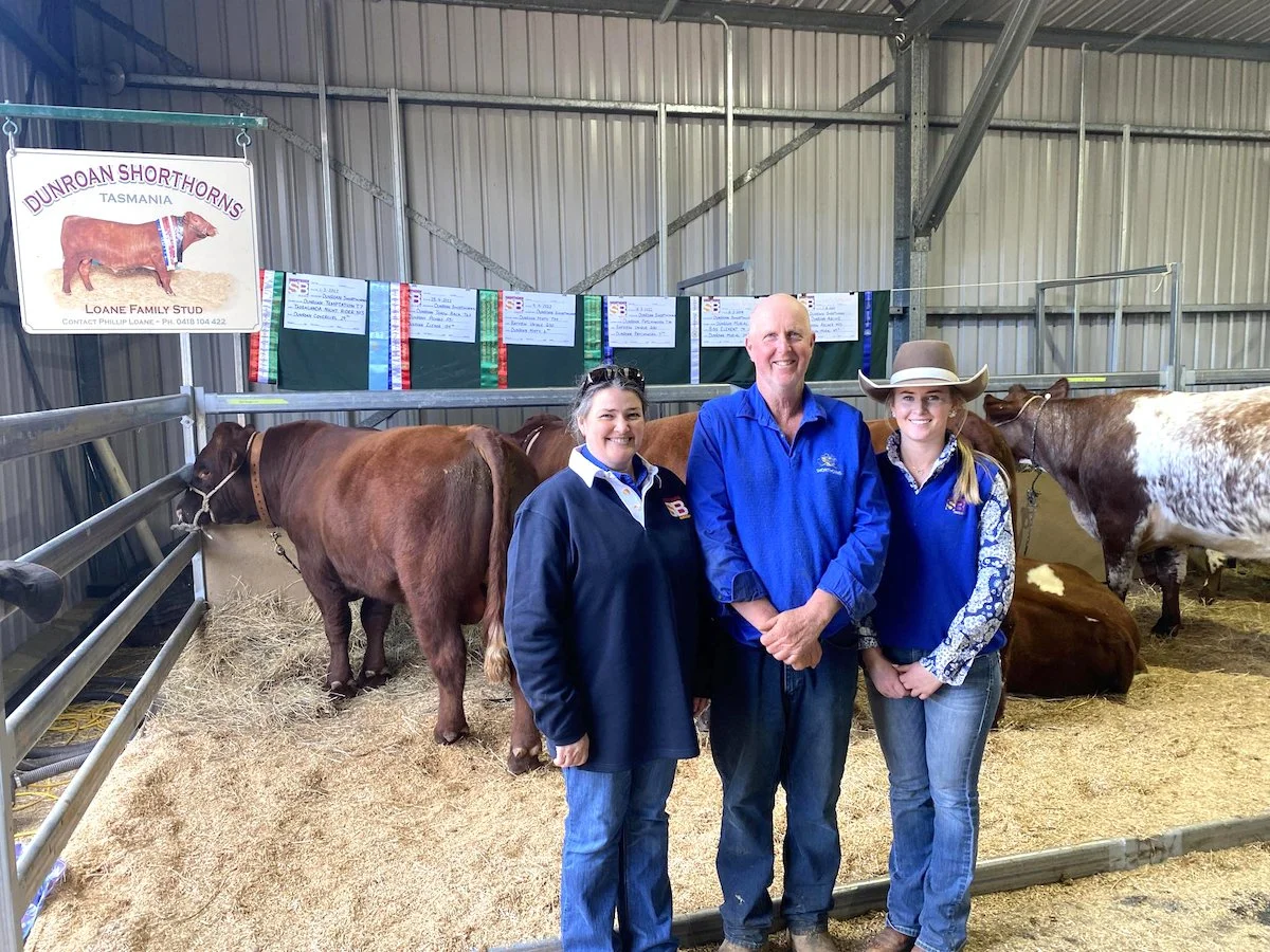 Dunroan has a long history of showing Shorthorns in Tasmania as part of their marketing scheme. They have had considerable success over the last several decades showing but have not allowed showing to change their focus on important beef genetic traits that are valuable to the beef trade and to their commercial bull buyers. They send a lot of commercial bulls to King Island, Tasmania. King Island is off the NW coast of Tasmania and has significant commercial beef herds. The Dunroan herd and yearling bulls have outstanding thickness with generally more size than in most herds located on mainland Australia. Dunroan has a production sale in March (fall season in Australia) that is well supported. Additional breeding stock is sold mostly within Tasmania, with occasional sales to mainland Australia. All of their finished steers go to a domestic Tasmanian processor. The Loanes see a bright future for Shorthorns in Tasmania despite the cost production obstacles they face.