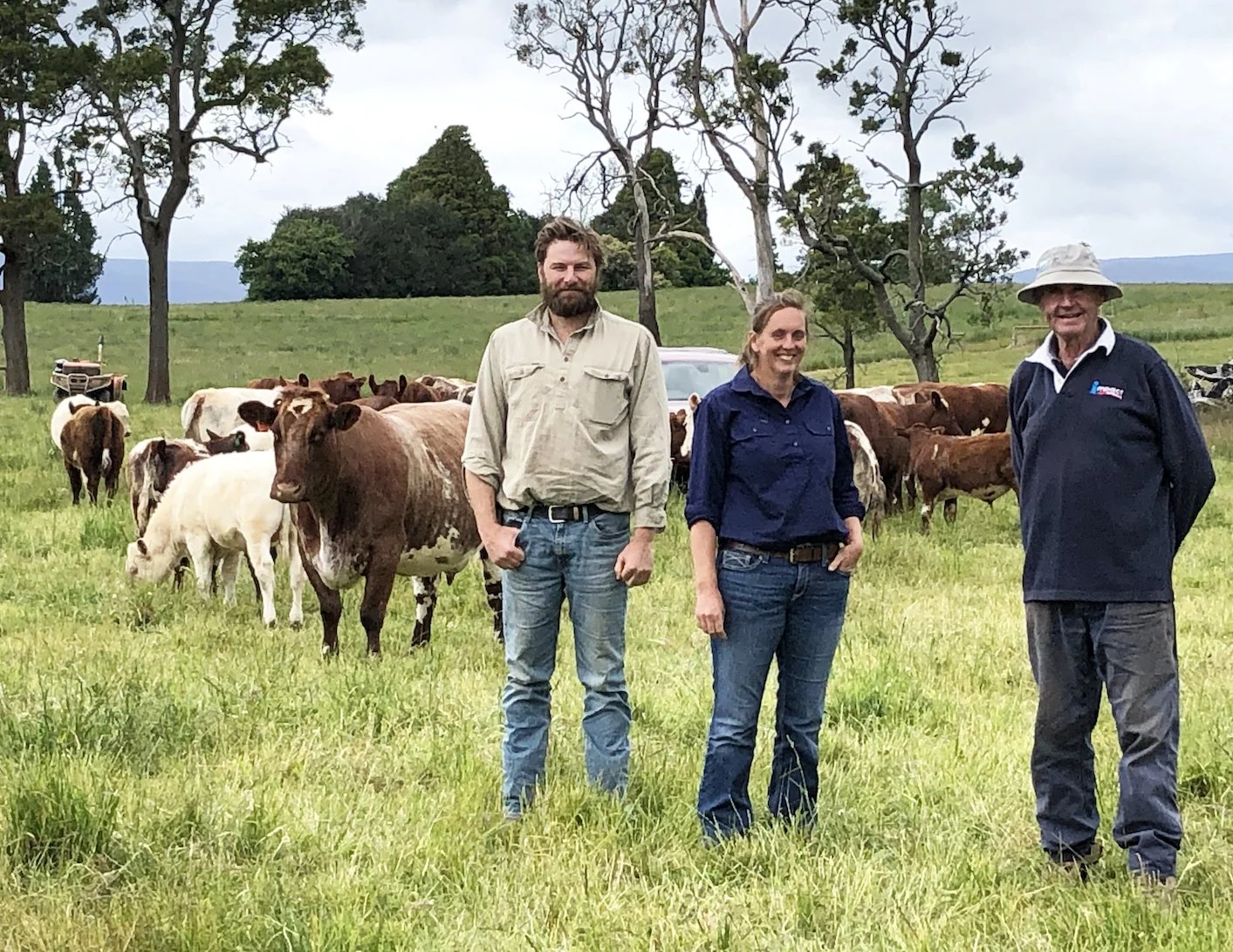 The picturesque setting that is Woodlands Farm can only be described as “Shorthorn Heaven”. The lush clover pastures provide optimal grazing conditions for much of the year to maximize growth and minimize stress while the herd, of approximately 150 cows, traverses the 340 acres that encompass the main farm. The herd was started in 1970 by Graeme Walsh and recently registered their 1000th Shorthorn calf. Graeme semi-retired in 2015, and the farm is now run by his daughter Dr. Carolynn Evans, a Veterinarian, and her husband Darren, ably assisted by their enthusiastic young son John, while Graeme takes on an advisory role. Dr. Evans still works part time at a Small Animal Veterinary Clinic in the Launceston area of Tasmania, but her main focus is the Woodlands herd with an intent to both build on her Father’s herd and enlarge it over time.